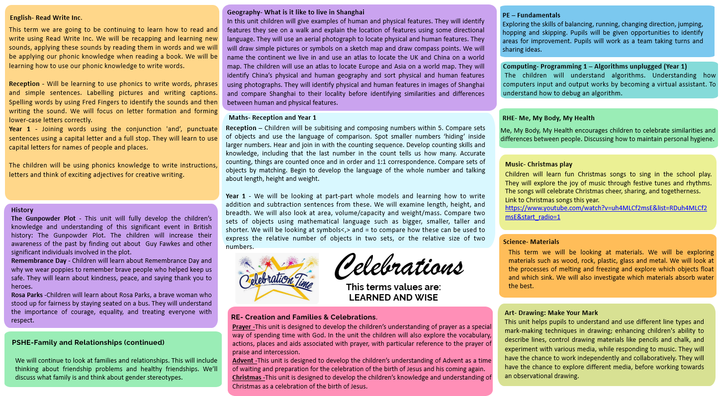 This term, our PE day will be Wednesday. Please make sure your child comes to school wearing their PE kit on this day. PE days may change again after the holidays.