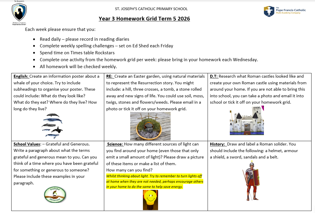 Please find below our homework grid for Term 5: