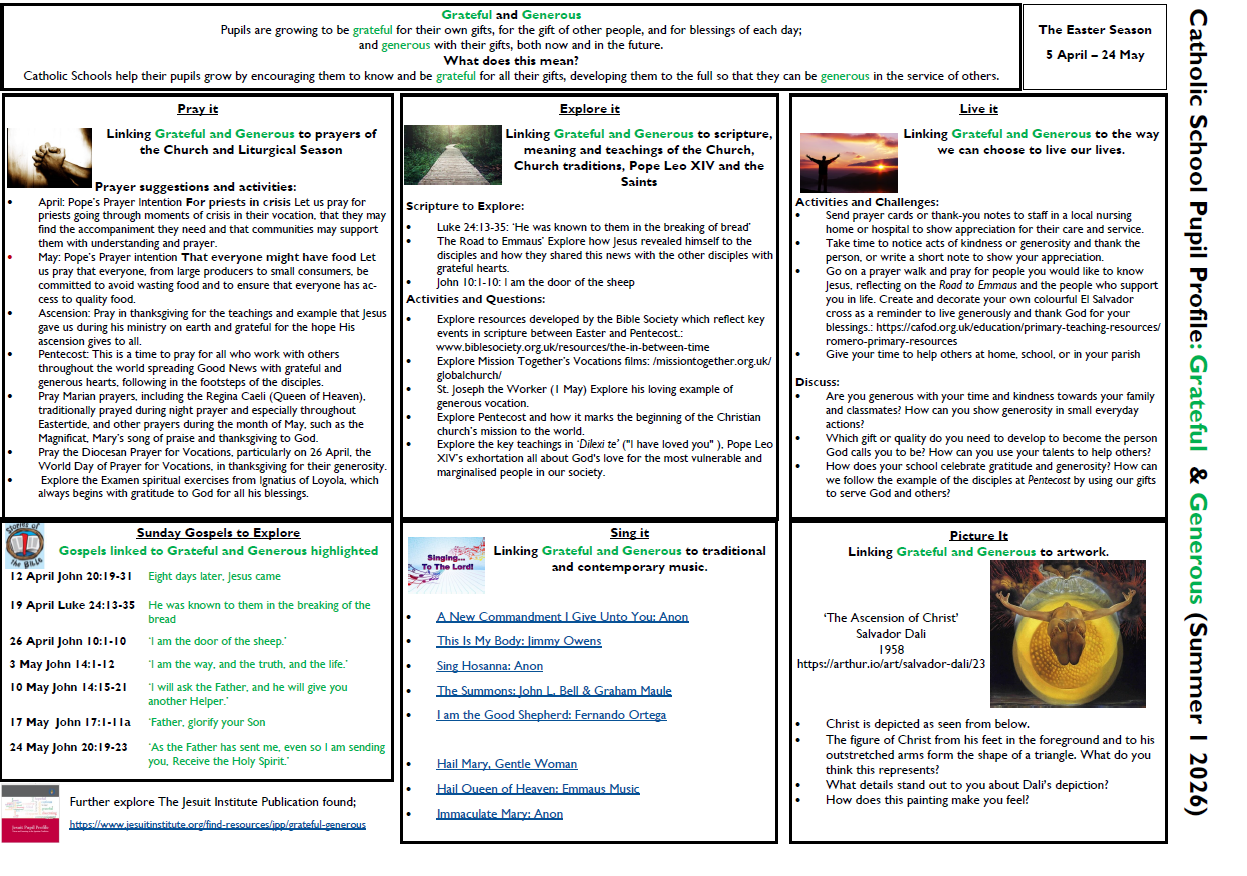 Our Catholic values for this term are: