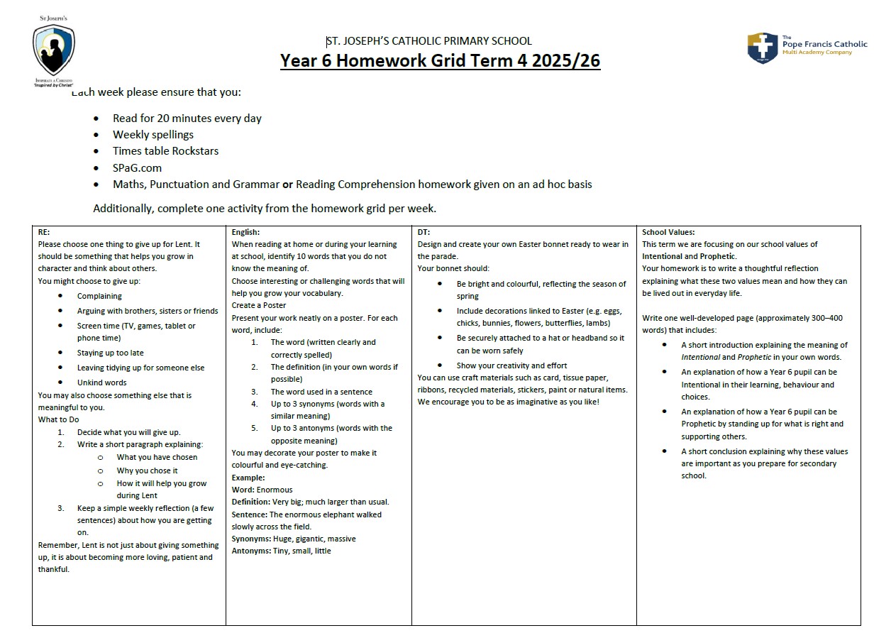 This term our PE lessons are on Monday each week. Please ensure that your child comes to school in the correct PE kit on this day.