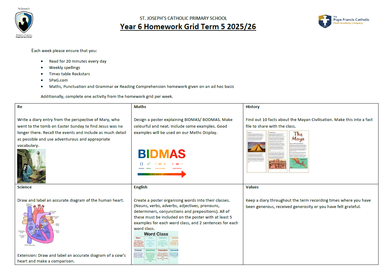Year 6 Term 4 Homework: